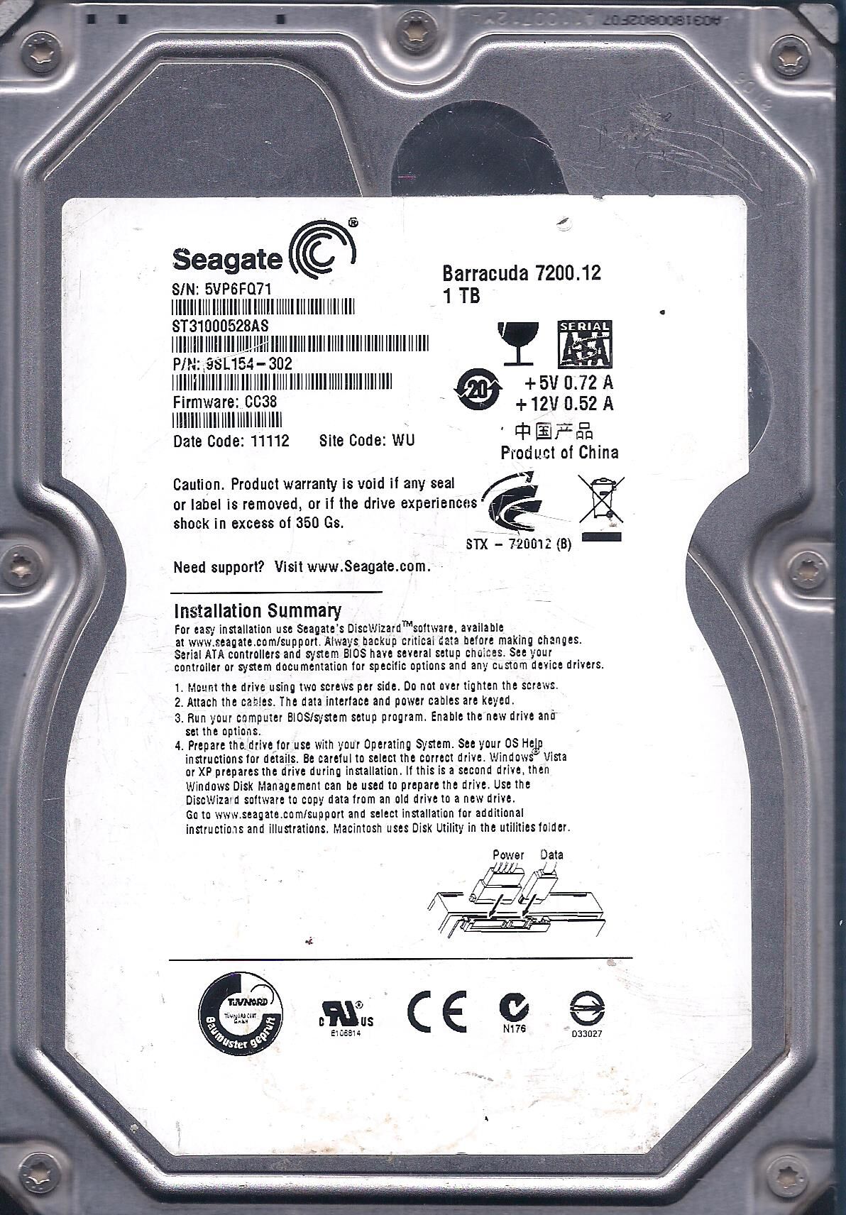 | Model | ST31000528AS |