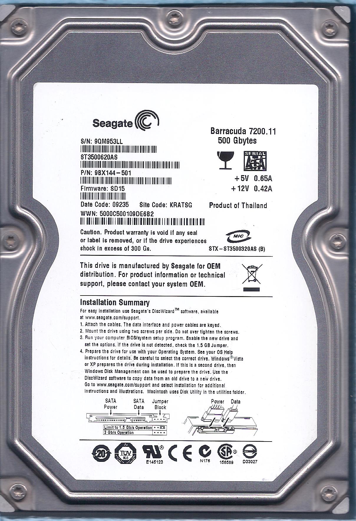 | Model | ST3500620AS |